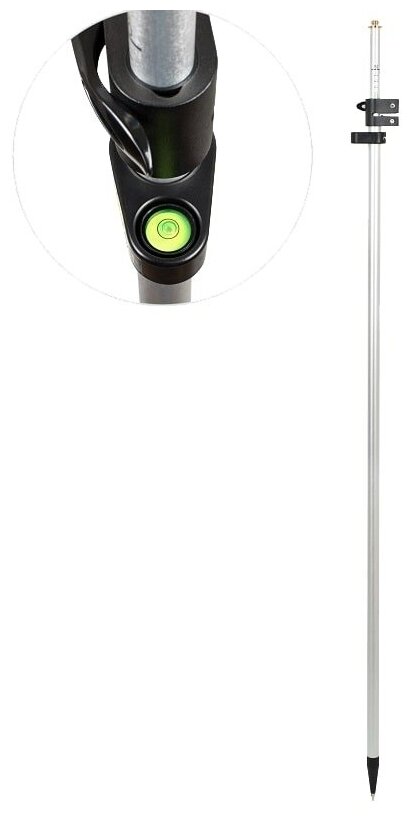 Алюминиевая телескопическая веха RGK CLS15 для установки призм (отражателей) и внешних GPS-антенн на высоте до 2,5 м. Фиксация высоты осуществляется зажимом-клипсой.
