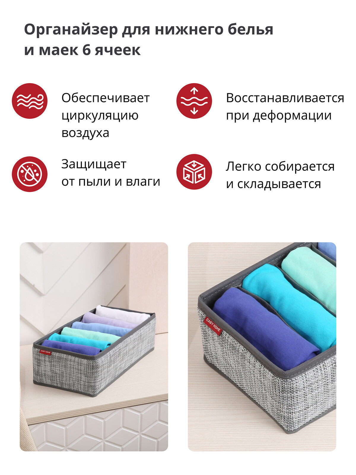 Органайзер для нижнего белья и маек Casy Home 35x16x10см 6 ячеек (OR-034)