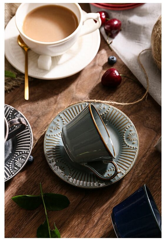 Чашки и блюдца выполнены из высококачественного фарфора и покрыты реактивной глазурью, благодаря которой изделия приобретают неповторимую текстуру. Поставляются в подарочной упаковке.