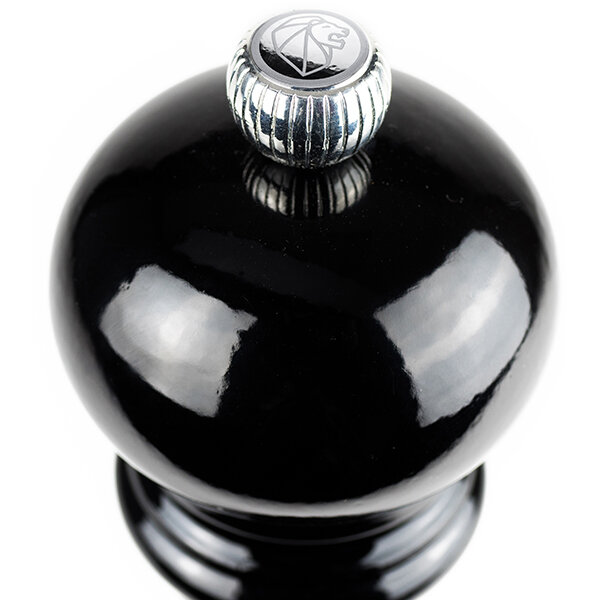 Черная блестящая мельница для соли станет достойным украшением как праздничного, так и повседневного стола.