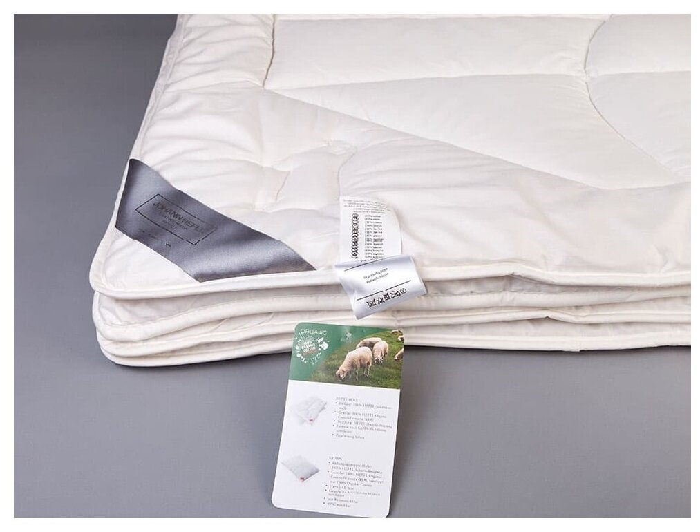 Всесезонное одеяло бренда JOHANN HEFEL с наполнителем из овечьей шерсти (100%) гигроскопичное, обладает терморегулирующими свойствами, хорошо впитывает влагу и пропускает воздух. Такое одеяло имеет долгий срок службы. Чехол одеяла выполнен из 100% плотного хлопка.