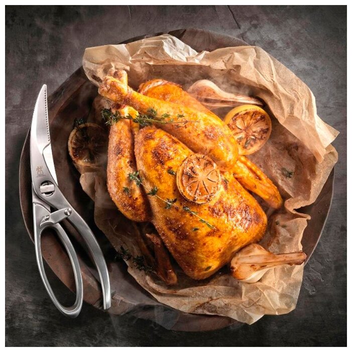 Всем любителям хрустящей жареной утки или вкусного жареного цыпленка понравятся ножницы для птицы Twin Select. Потому что они позволяют легко порционировать домашнюю птицу всех видов. Продуманная конструкция ножниц для птицы начинается с эргономичной ручки, которая позволяет безопасно пользоваться ножницами, не утомляя руки. Ножницы обеспечивают идеальный эффект рычага и хорошую передачу мощности. Благодаря костодробилке и зубчатому лезвию вы можете легко и чисто разрезать мясо, сухожилия и даже кости. Зубцы предотвращают скольжение продуктов, что еще больше облегчает работу. Ножницы выкованы из специальной нержавеющей стали и отличаются особой остротой. При коротком сильном нажатии вы можете быстро и чисто резать. Это особенно удобно, если вы используете ножницы для порционирования и сервировки. Пружина находится внутри, что предотвращает ее выпрыгивание. А если ножницы вам больше не нужны, их можно легко разобрать и почистить с помощью съемного механизма.