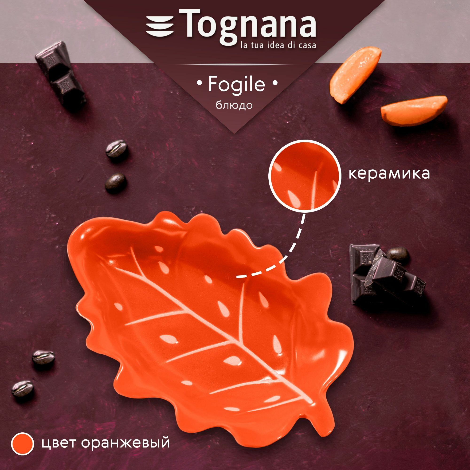 Блюдо сервировочное Tognana Relief Foglie цвет оранжевый (RE0PI354477)