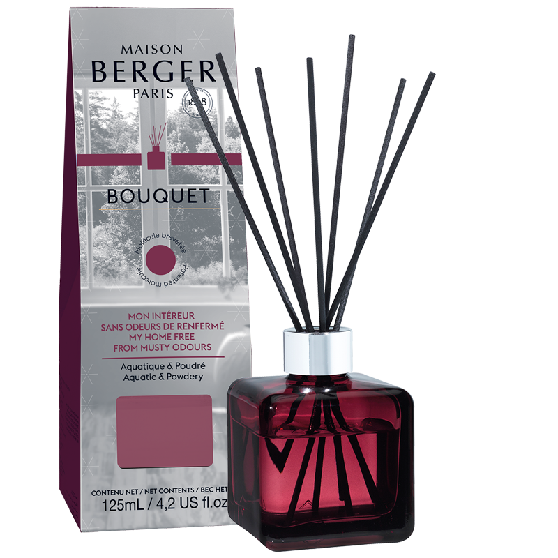 Ароматический диффузор Maison Berger ДЛЯ ГОСТИНОЙ – это диффузор с палочками, предназначенный не только для ароматизации, но и для устранения неприятных запахов. В комплект входит флакон, ароматическая жидкость и набор черных палочек. Флакон выполнен в форме куба со сглаженными углами из цветного прозрачного стекла и украшен глянцевой металлической оправой. Аромадиффузор выгладит лаконично и элегантно, он хорошо смотрится в помещении с любым дизайном. Коллекция Нейтрализаторы запахов – это новинка 2022 г. от Maison Berger. Компания выпустила линейку аромадиффузоров, сменных ароматов и автомобильных ароматизаторов, которые не только создают аромат, но и устраняют неприятные запахи в помещении! В состав этих ароматов входят молекулы с запатентованной формулой, обладающие нейтрализующим действием. Они комплексно воздействуют на молекулы неприятных запахов, помогая избавиться от них. Ароматические композиции, созданные мэтрами парфюмерии, деликатно наполняют помещение нежными ароматами. Аромат: Парфюмерная композиция ДЛЯ ГОСТИНОЙ – это легкий, нежный и свежий цветочный аромат свежести и чистоты. Альдегиды и пудрово-мускусные ноты дарят ощущение комфорта. Белая глина в составе устраняет неприятные запахи и обладает оздоровительным эффектом.Ароматический диффузор Maison Berger ДЛЯ ГОСТИНОЙ объемом 125 мл рассчитан примерно на 1,5 месяца использования. После полного испарения жидкости, аромадиффузор можно снова наполнить. Выбирайте любые ароматы от любого производителя. Главное, не забыть приобрести вместе со сменным ароматом комплект новых палочек. Интенсивность аромата регулируется количеством вставленных во флакон палочек. Чем их больше, тем сильнее ароматизация. Но и испарение жидкости будет происходить быстрее. Палочки можно добавлять или убирать, а также время от времени переворачивать.