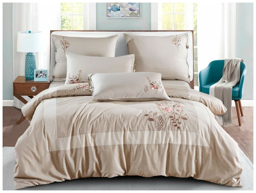 Комплект постельного белья евро Anabella Asabella бежевый (474-6) (размер: евростандарт)