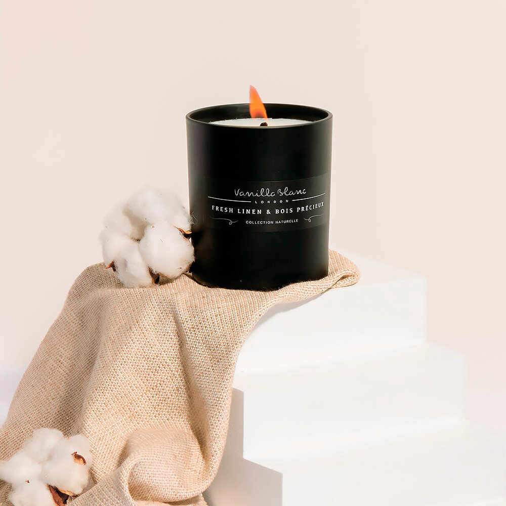 Свеча ароматическая в стекле Vanilla Blanc Naturelle Лен и драгоценное дерево (VB0026)