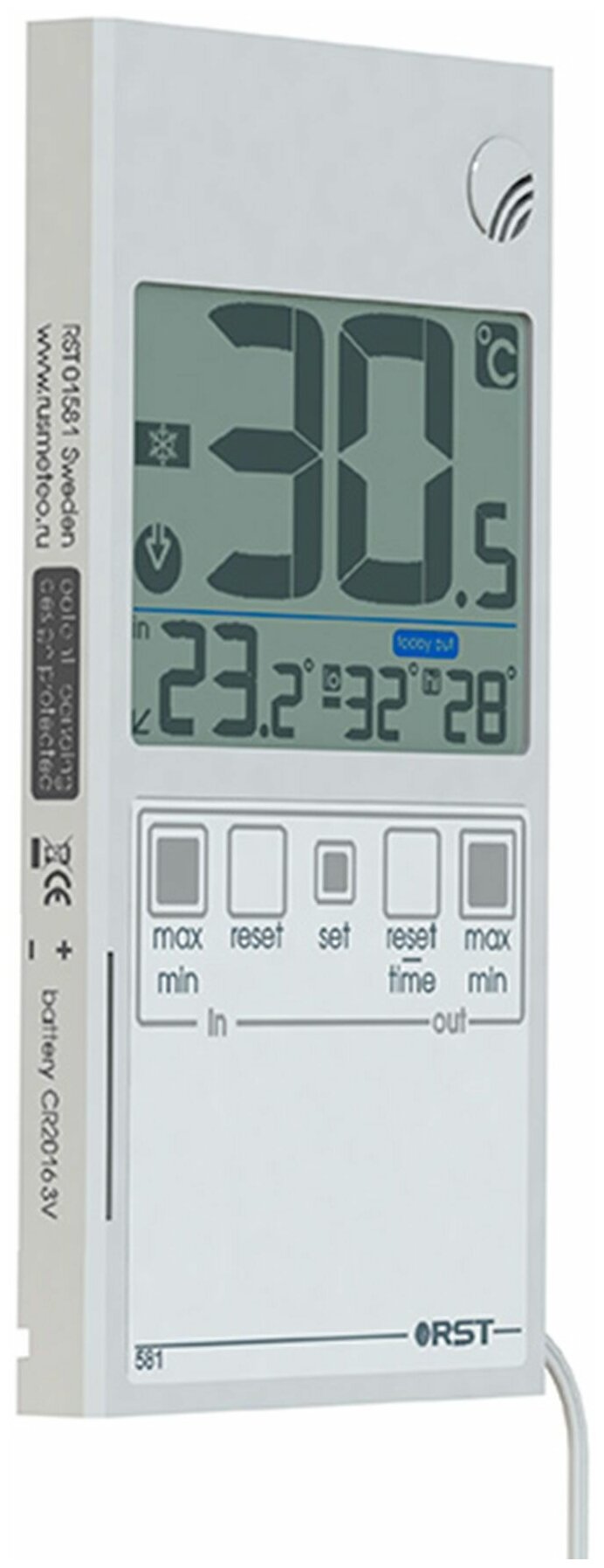 Цифровой термометр-гигрометр предназначен для измерения температуры и относительной влажности воздуха на улице. Информация о погоде на текущий момент, тенденция и динамика её изменения отображаются на LCD дисплее, которым оснащён прибор. Происходит постоянное обновления значений, которое делается на основе полученных данных. Корпус термометра прозрачный, устанавливается на окно с помощью специальных термостойких липучек.