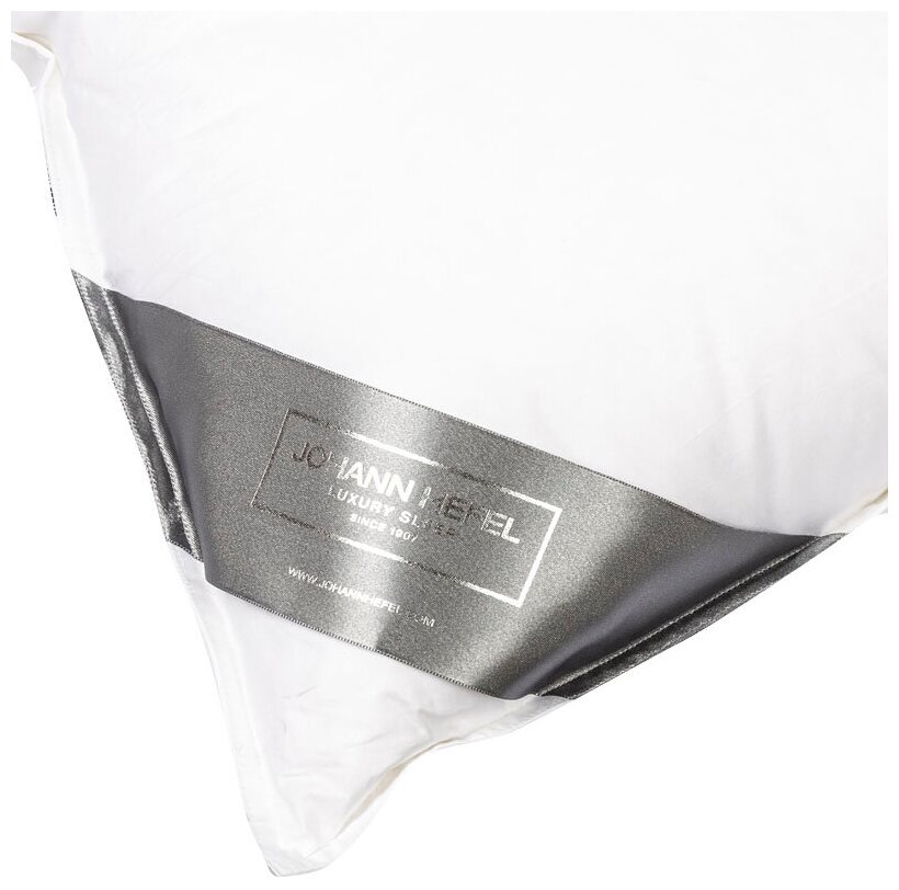 Подушка плотная бренда JOHANN HEFEL в наружной камере состоит из пуха (90%) и пера (10%), внутренняя камера - из 100% гусиного пера, которое прекрасно держит форму подушки. Чехол подушки из 100% хлопка батиста.