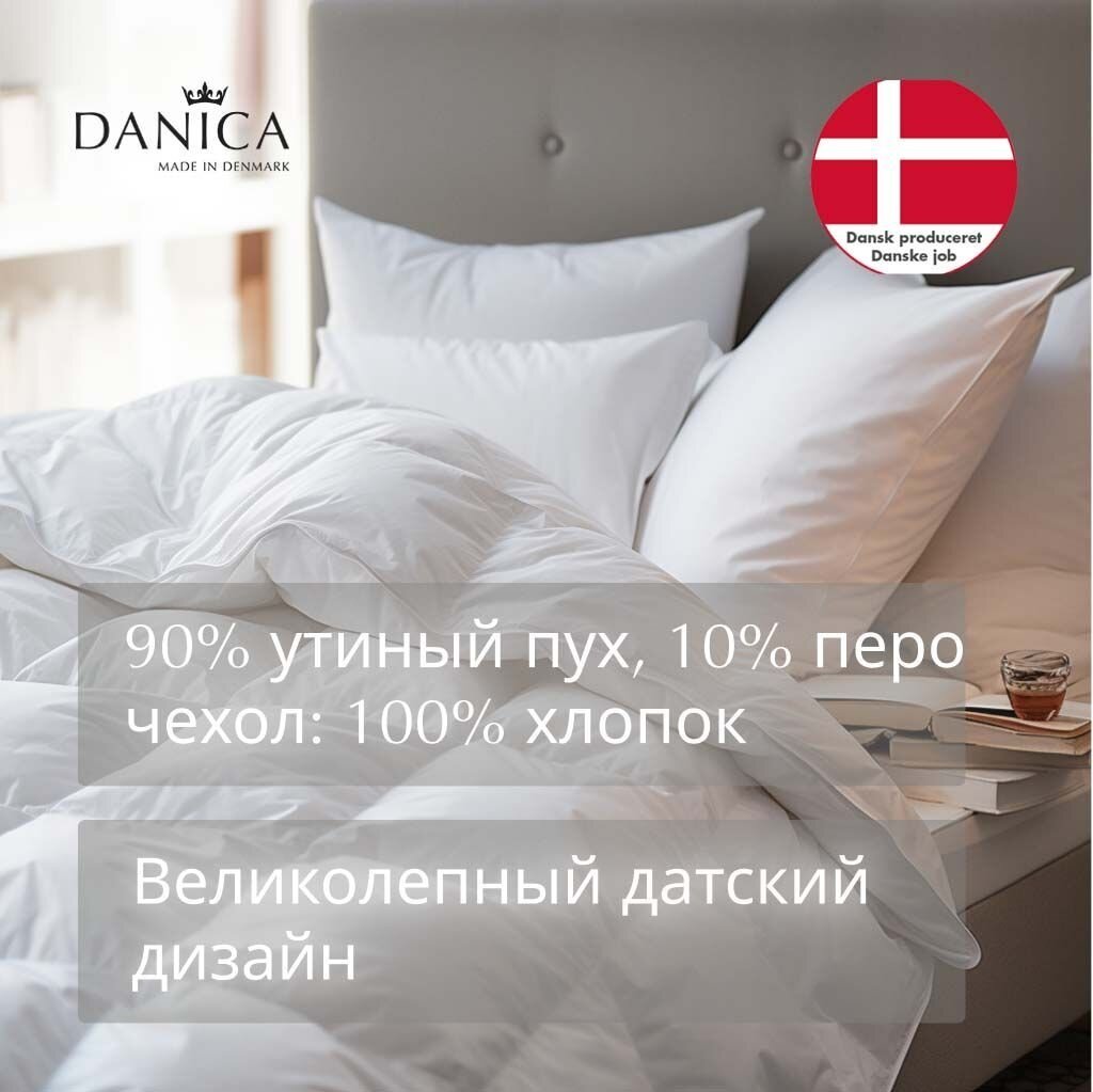 | Состав | Наполнитель 90% белый пух утки, 10% мелкое перо; чехол 100% хлопок |