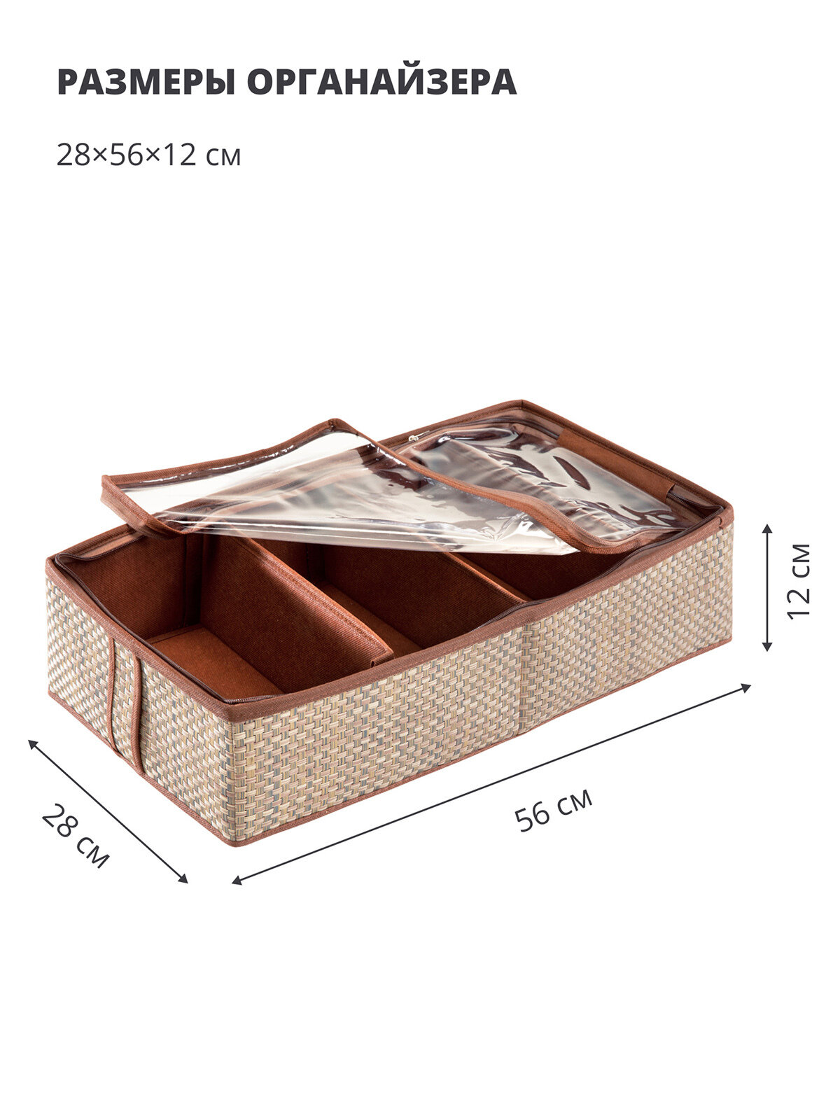 Наконец-то решена проблема хранения обуви! Компактный, но вместительный органайзер избавит дом от объемных обувных коробок, сэкономит полезное пространство и придаст гардеробной стильный вид. Благодаря прозрачной крышке на молнии, содержимое органайзера отлично просматривается, и найти нужную пару при наступлении нового сезона будет проще простого! Кроме этого, хранение обуви в органайзере обеспечивает ее сохранность и защиту от пыли. Обувь не потеряет форму, будет всегда хорошо выглядеть и дольше прослужит.