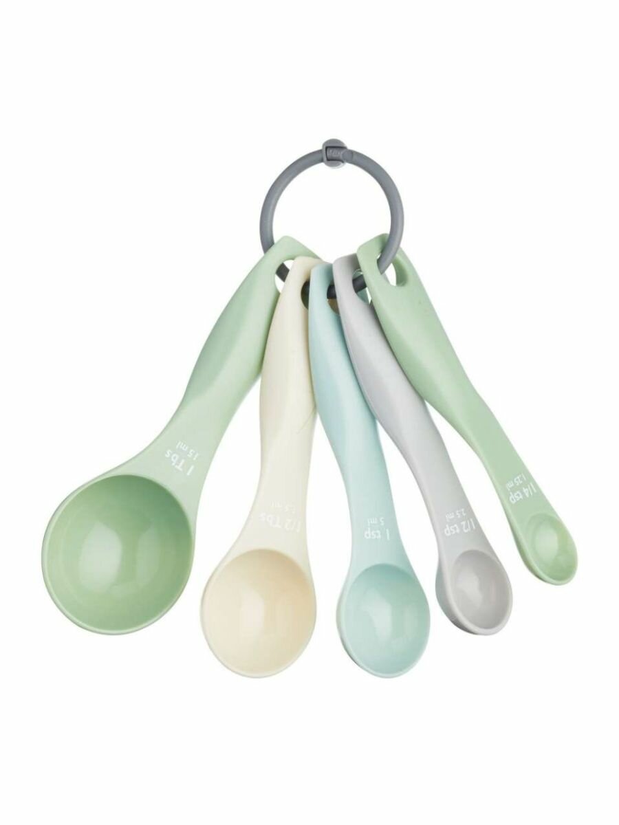 Набор из пяти пластиковых мерных ложек - незаменимый помощник в создании кулинарных шедевров. Каждая ложка имеет обозначения Tbs (столовая ложка)/ tsp (чайная ложка) и миллилитры, что позволяет измерять как сухие так и влажные ингредиенты. Набор состоит из пластика, устойчивого к запахам и цветам. Ложки соединены между собой съемным кольцом, для удобства хранения.