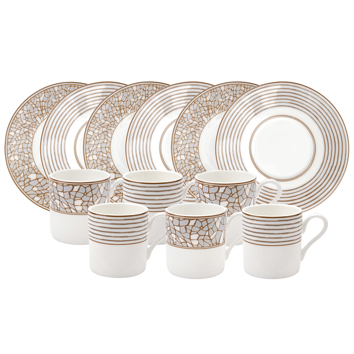 Сервиз включает 12 предметов, шесть кофейных пар объемом 100 мл, которые позволяют вместить оптимальное количество любимого горячего напитка, ароматного кофе, какао, или горячего шоколада. Это современный и универсальный сервиз для традиционного кофе во время завтрака или обеда в кругу семьи или друзей имеет доступные цены. Посуду этой коллекции можно использовать в микроволновой печи, а также мыть в посудомоечной машине. Посуда поставляется в подарочной коробке.