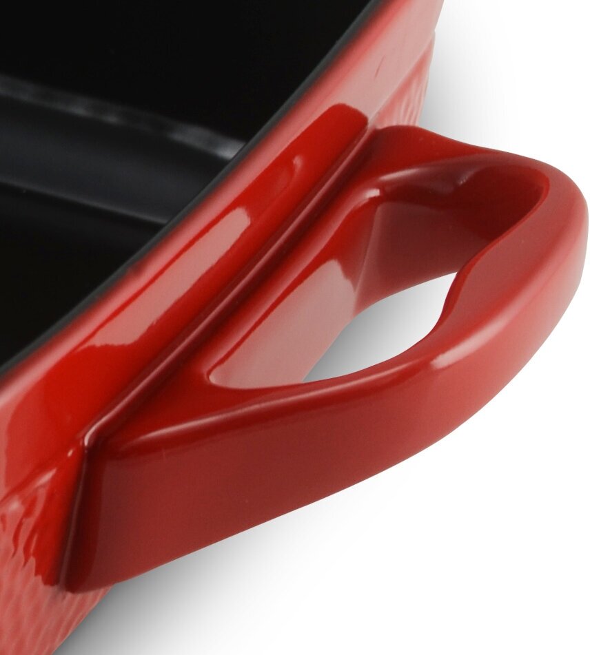Форма и с внешней, и с внутренней стороны покрыта гладкой, легко очищающейся во время мыться, глазурью. Она же препятствует прилипанию блюд к поверхности. Отличный внешний вид позволяет подавать блюда из духовки к столу прямо в форме, не перекладывая в другую посуду.