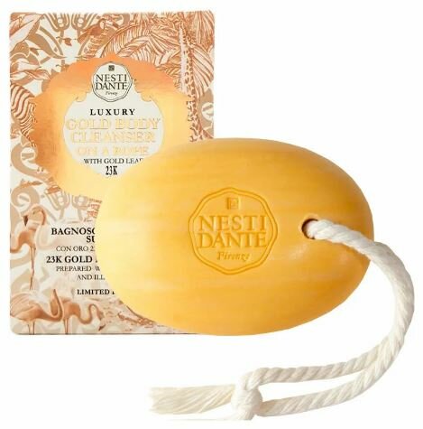 Luxury Gold Body Cleanser on a Rope (Шикарное золотое очищающее) имеет пудровый аромат королевского ириса символа Флоренции. * Перламутровое сияние мылу придает мика природная слюда, которая окрашивается минеральными пигментами в разные оттенки.