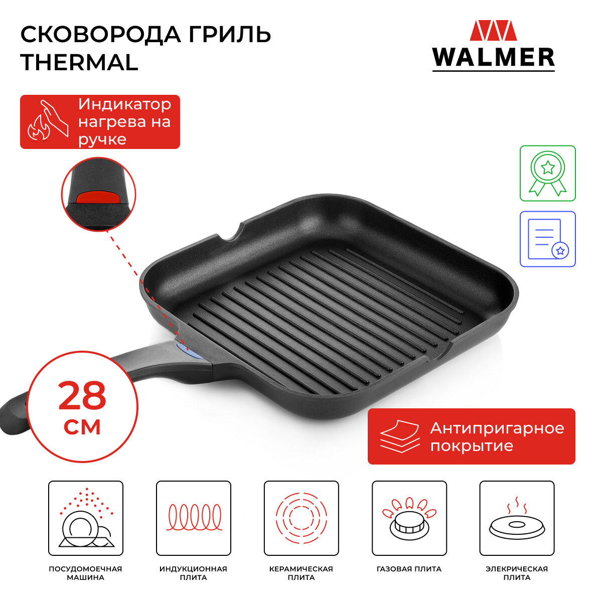 На сегодняшний день товар «Сковорода гриль Walmer Thermal (W35212828)» можно купить с кешбеком в 1 магазине: Яндекс.Маркет