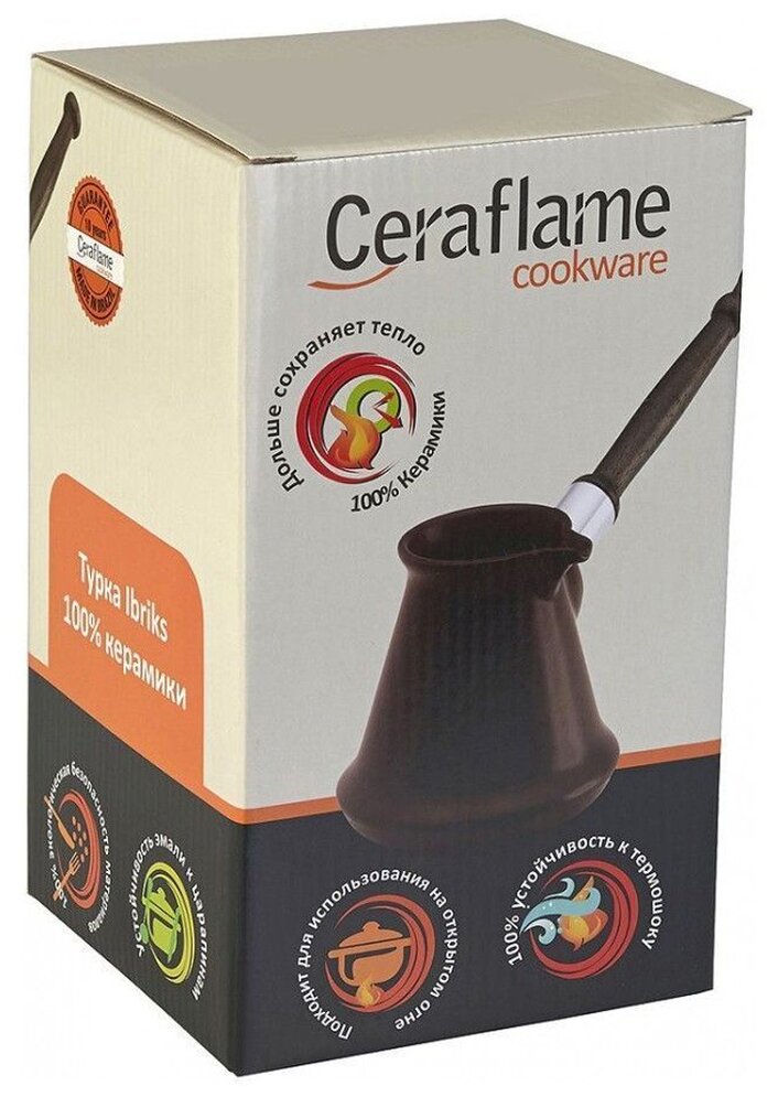 Жаропрочная керамика и исключительно правильная форма турки позволяют приготовить напиток идеального качества и долго сохранять его горячим.