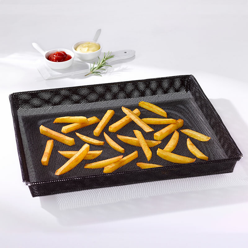 Сетчатая структура позволяет горячему воздуху циркулировать по всему объему корзины. Идеальная корочка с каждой стороны гарантирована.