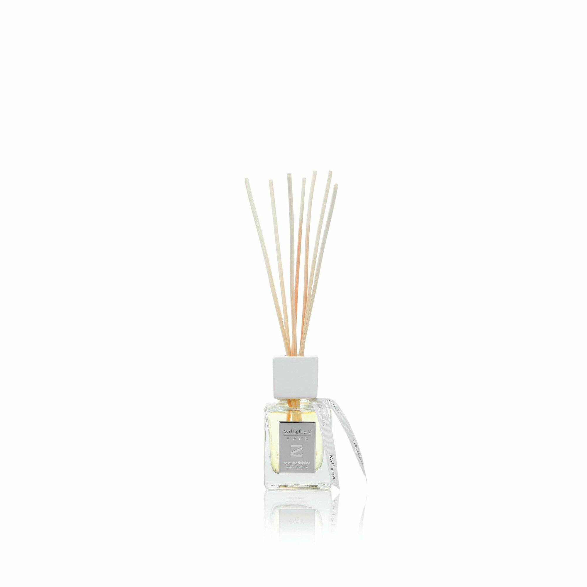 Романтическое, весеннее настроение создаст ароматический диффузор с запахом лепестков розы Мадлен. Он подарит вам расслабление и чувство гармонии, это идеальный вариант для спальни – с таким ароматом в комнате вы будете чувствовать себя более отдохнувшим после сна. Аромат диффузора Розовые лепестки Zona Rose Madelaine от Millefiori Milano полностью натурален, он не содержит вредных химических веществ и может быть использован в доме, где живут дети. В основе композиции лежат лепестки розы, запах которых элегантно дополняет белая лилия и цикламен. Аромат легкий, но насыщенный. Средними нотами жидкости являются имбирь и африканская герань, что добавляет пикантности и стиля. А запахи амбры, кедра и мадагаскарской ванили делают аромат более полным и совершенным.