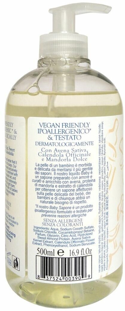 | Состав | Aqua, sodium coceth sulfate, sodium chloride, cocamidopropyl betaine, parfum, glycerin, citric acid, hydrolized sweet almond protein, avena sativa kernel extract, calendula officinalis flower extract, phenoxyethanol, sodium benzoate. |