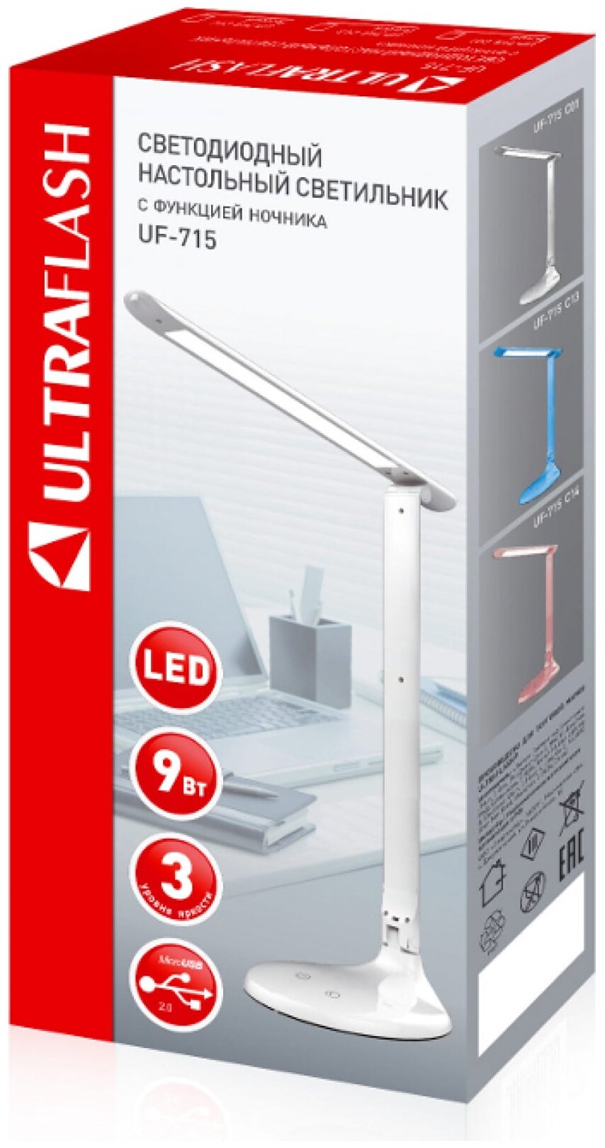 Светильники настольные Ultraflash предназначены для освещения рабочего пространства на письменном столе, бюро, для создания комфортных условий на любом другом рабочем месте. Светильники имеют стильный дизайн, изготовлены из высококачественных негорючих и нетоксичных материалов, отвечают современным нормам комфорта и безопасности, просты в установке и дальнейшей эксплуатации. Предназначены для использования во внутренних сухих помещениях (квартиры, офисы, школы, средние и высшие учебные заведения).