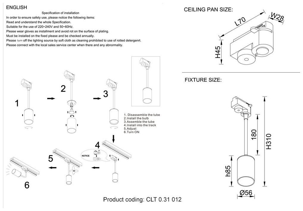 Светильник трековый однофазный Crystal Lux CLT 0.31 012 BL