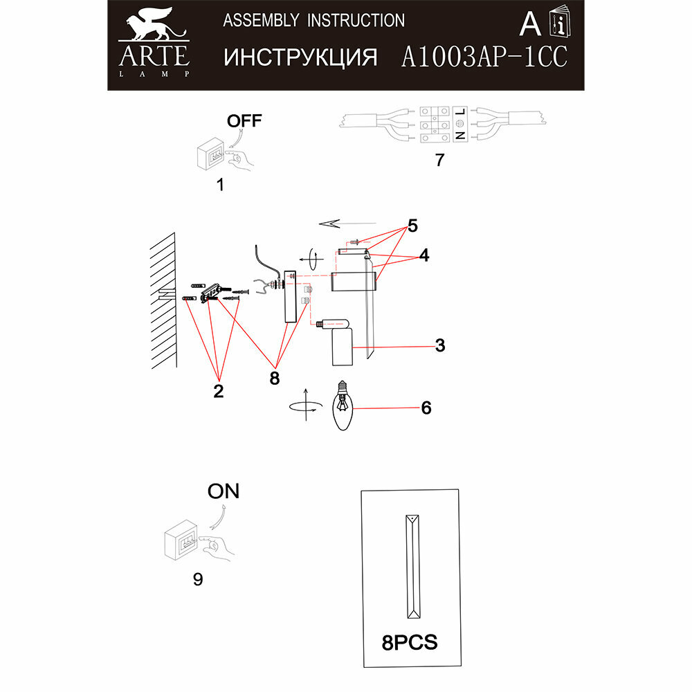 Бра Arte Lamp SECUNDA A1003AP-1CC