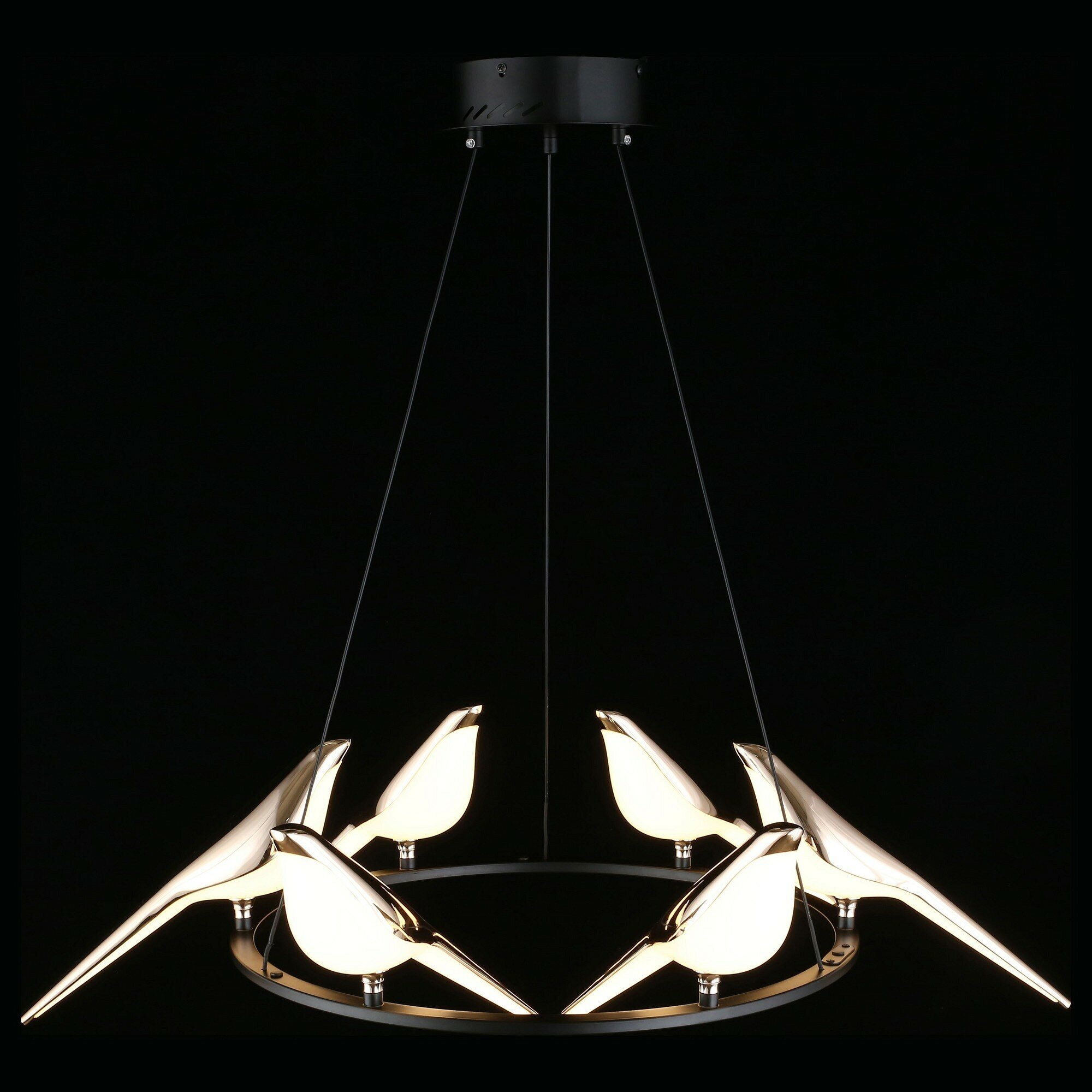 Любители оригинальных форм оценят экстравагантную коллекцию «Astor» с птичьими фигурками, которые являются одновременно и украшением конструкции, и стильными плафонами для освещения пространства. Роскошная люстра наполнит мягким рассеянным светом гостиную или супружескую спальню. Рекомендуемая площадь освещения: 12 кв.м.