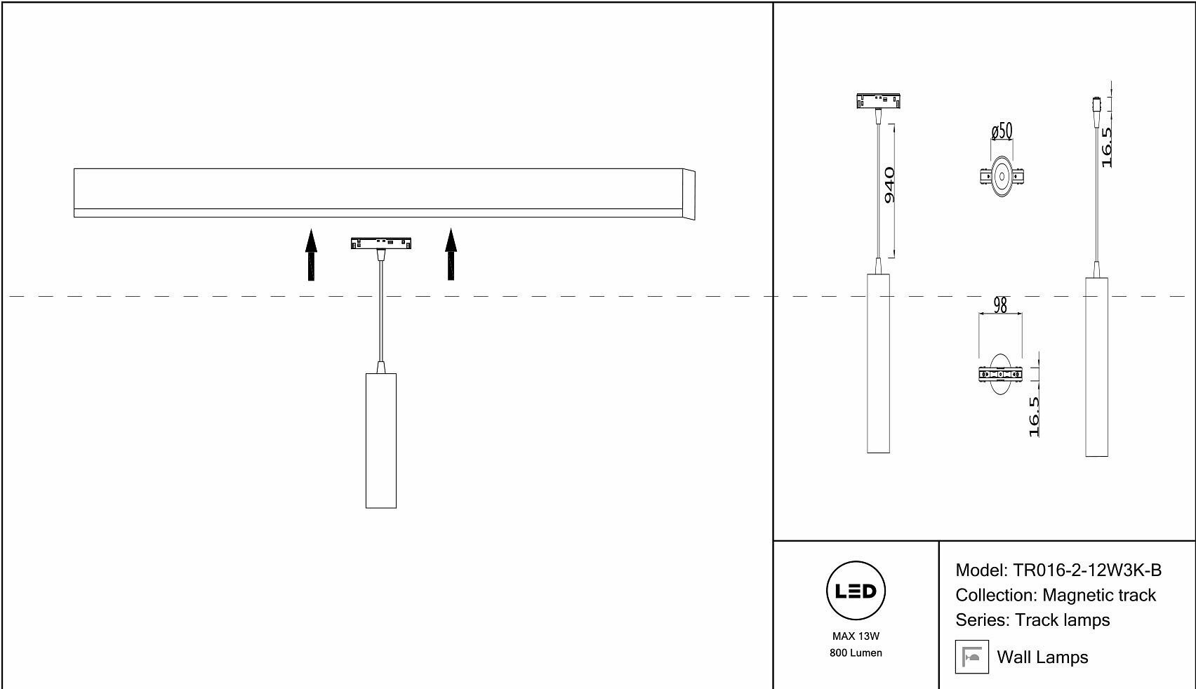 | Артикул | TR016-2-12W3K-B_MY |