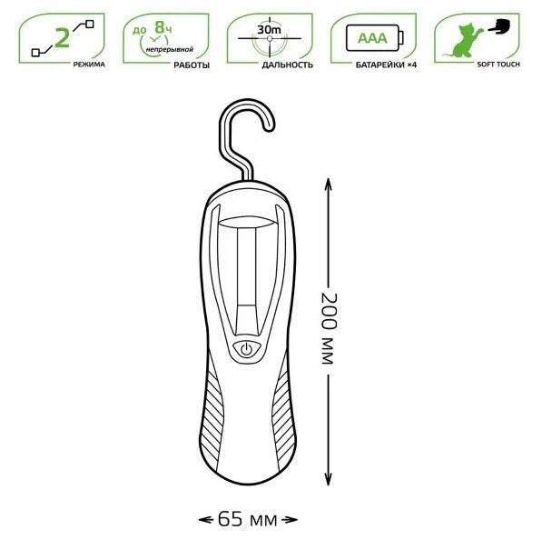 | Источник света | светодиод, 4 Вт, дальность 30 м |