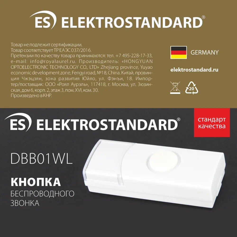 На сегодняшний день товар «Кнопка звонка Elektrostandard DBB01WL 4690389037214 (a027588)» можно купить с кешбеком в 1 магазине: Яндекс.Маркет