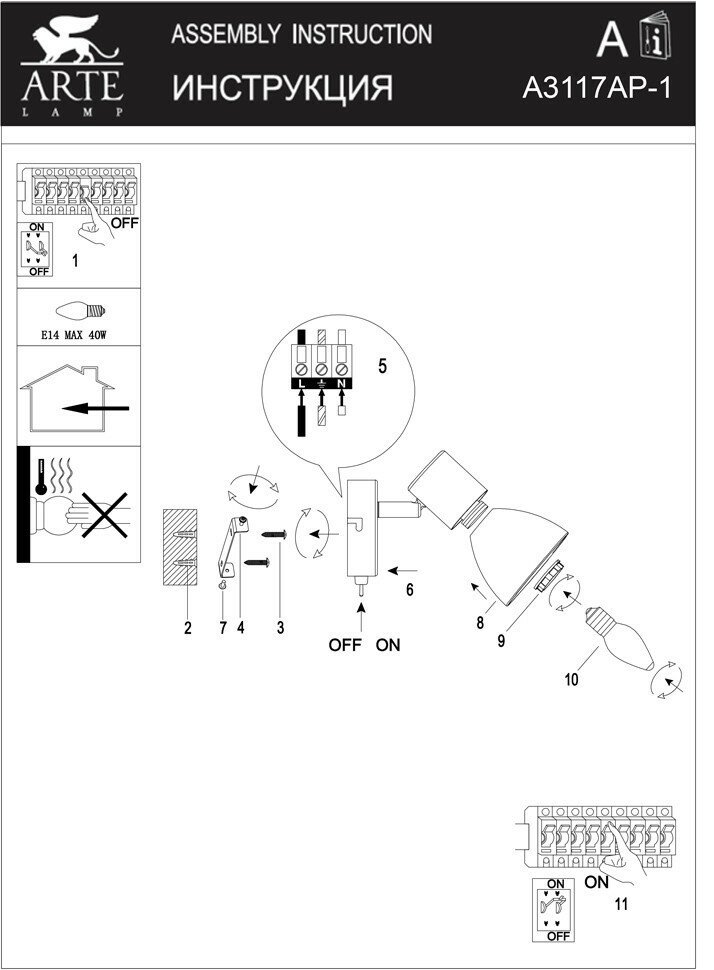 | MAX мощность ламп / диодов, Вт | 40 |