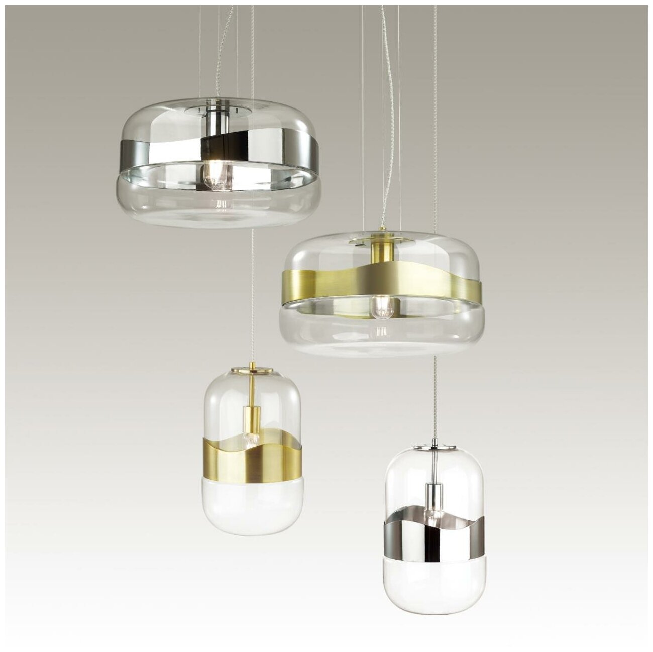 Линия Aplie - это подвесы с модной скругленной формой стекла в прозрачном цвете. Волнообразные металлические декоры с эффектными бликами на металле прикрывают источники света и делают освещение очень комфортным. Мы рекомендуем использовать подвесы как одиночно , так и в группе с установкой на разных высотах.