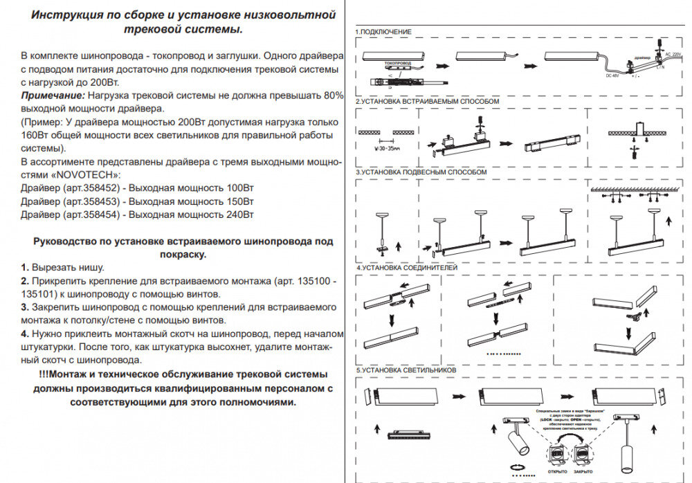 Современная компактная низковольтная трековая система 48В предназначенная специально для интерьеров — ширина трека всего 26.2 мм. Это новое высокотехнологичное решение для искусственного освещения и декоративной подсветки. Шинопроводы просты в монтаже и удобны в эксплуатации. Это новейшая замена магнитной трековой системы. Трек можно отрезать в любом месте с точностью до миллиметра в отличие от магнитного, где длина строго зависит от размера отдельного сегмента. При этом треки легко соединяются друг с другом и их стыки не видны. Это позволяет собрать трековую систему любой длины и конфигурации. Основа шинопровода представляет собой алюминиевый профиль, который может напрямую крепиться к потолку, встраиваться в потолок с помощью специальных креплений и подвешиваться с помощью комплекта подвесов. Специальные замки в виде «барашков» обеспечивают надежное крепление светильника к треку. Светильник начинает работать, когда защелкивающееся соединение контактирует с медным слоем с обеих сторон шинопровода.