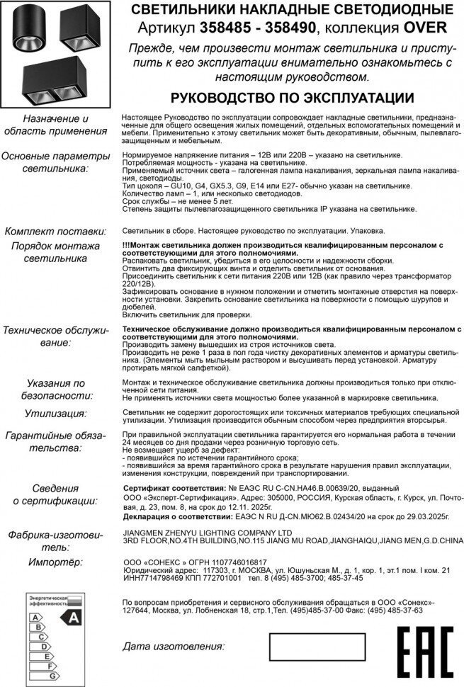 NOVOTECH 358925 инструкция по сборке