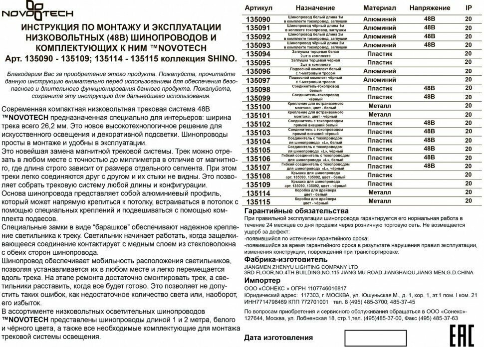 Аксессуар для треков Novotech 135097 серии SHINO FLUM. Придаст особый шарм вашему интерьеру. Параметры пылевлагозащиты IP — 20. Страна происхождения бренда — ВЕНГРИЯ.