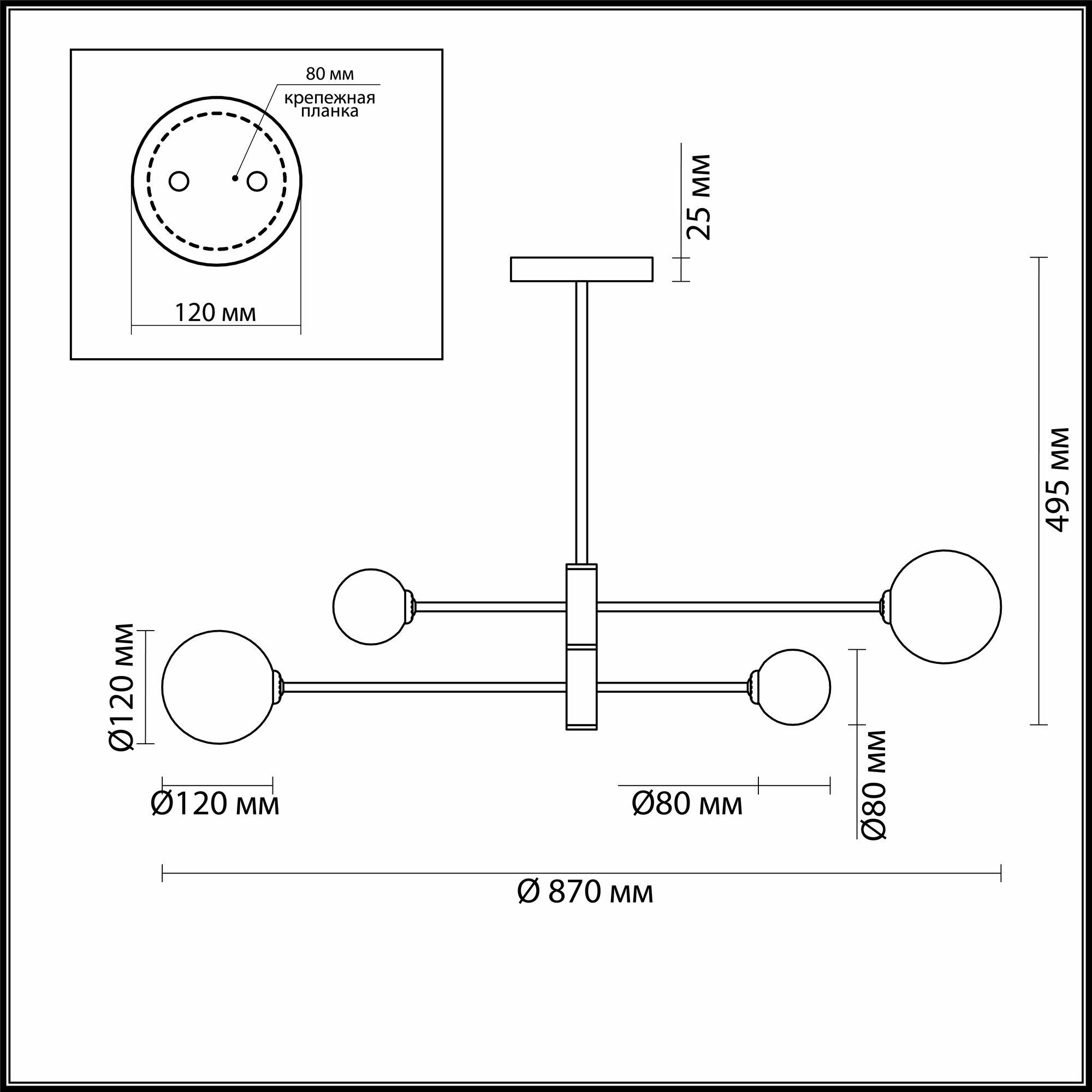 | Место установки | На потолок |