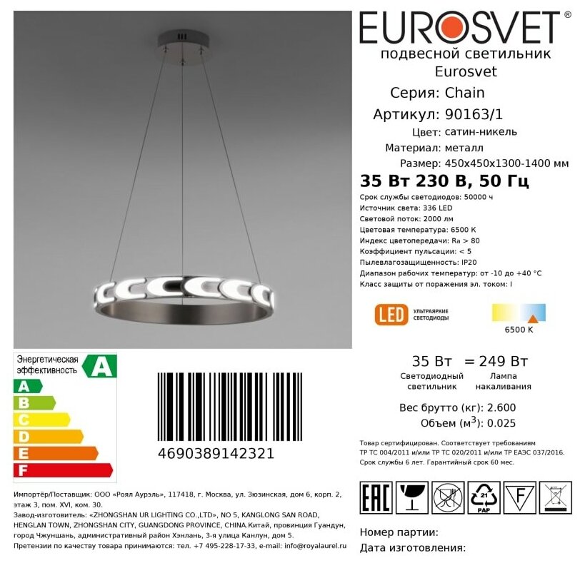 Светильник Eurosvet CHAIN 90164/1 4690389142345 (a045375)