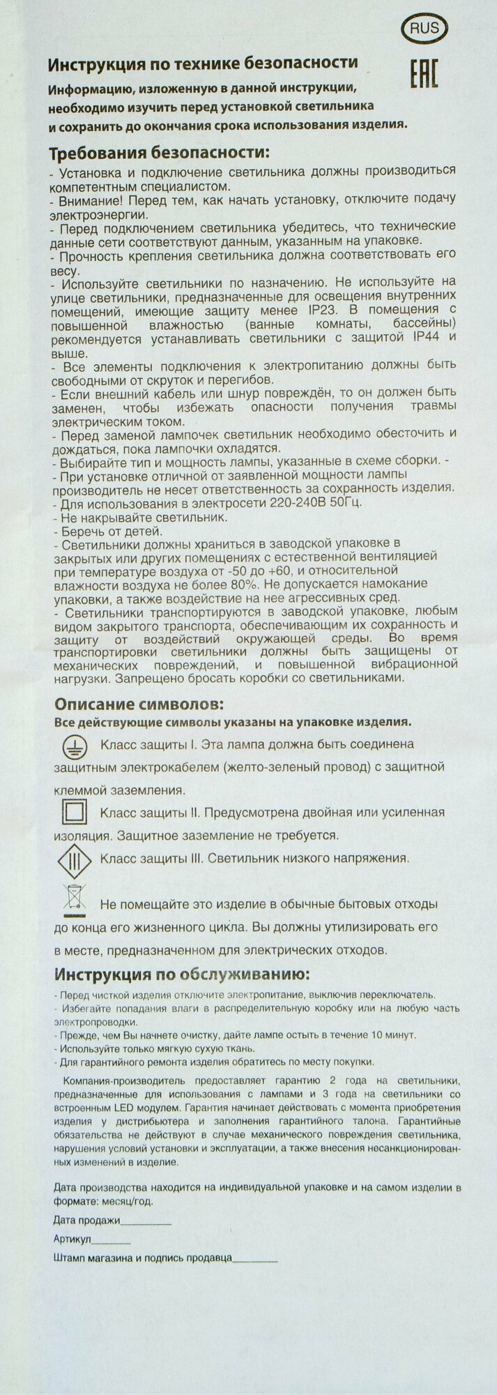| Максимальная допустимая мощность лампы (Вт) | 50 |
