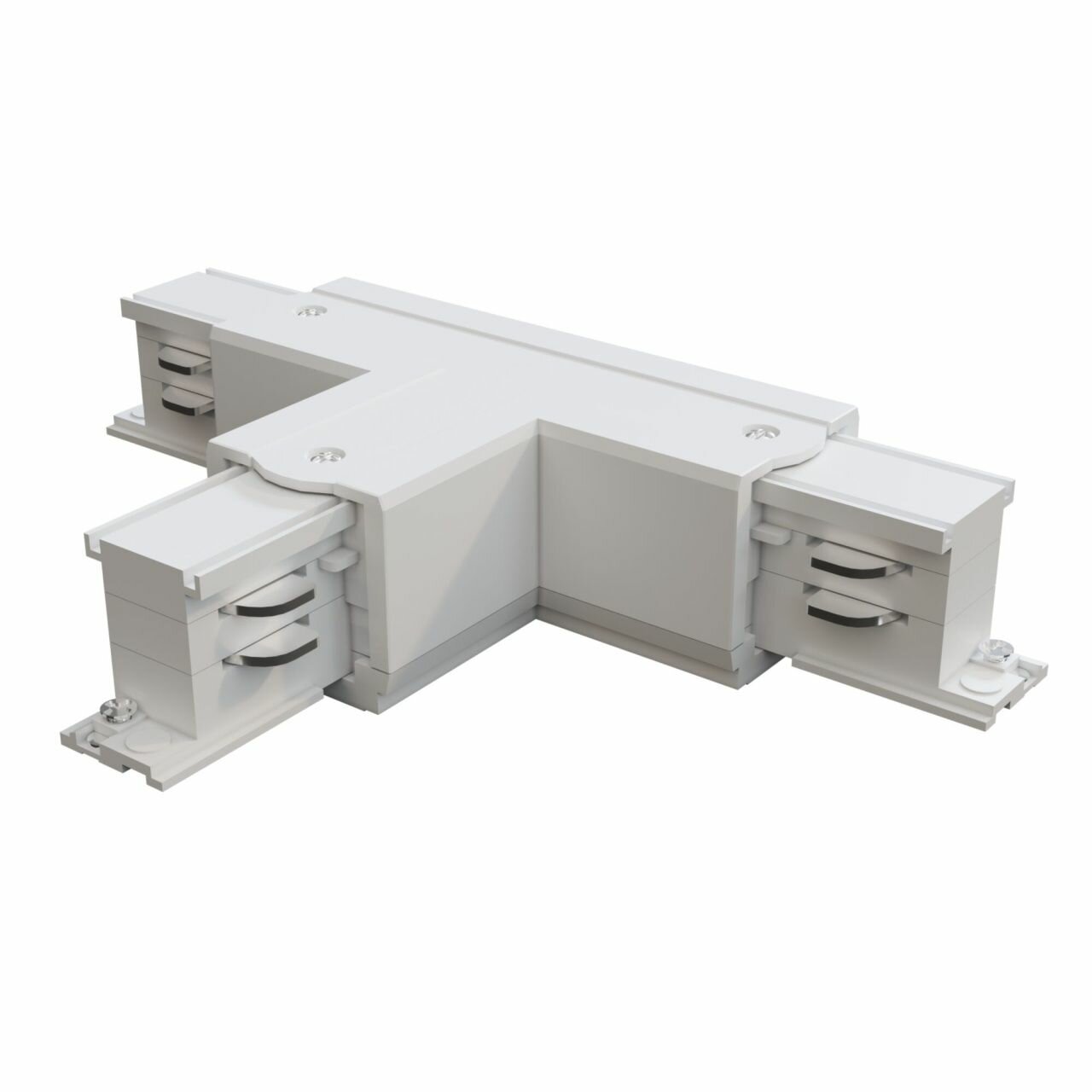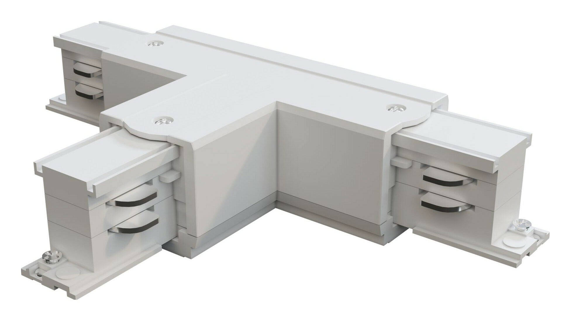 Соединитель (коннектор) T-образный для трехфазного шинопровода. Направление соединений снаружи/справа либо снаружи/слева (определение необходимого коннектора происходит относительно контакта заземления системы). Данный коннектор позволяет установить шинопровод по периметру помещения в конструкцию любой сложности.