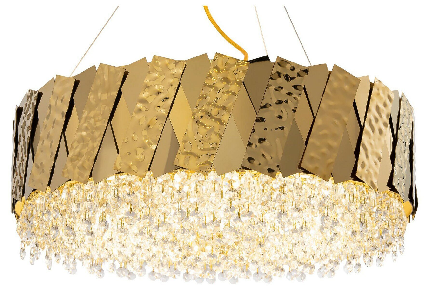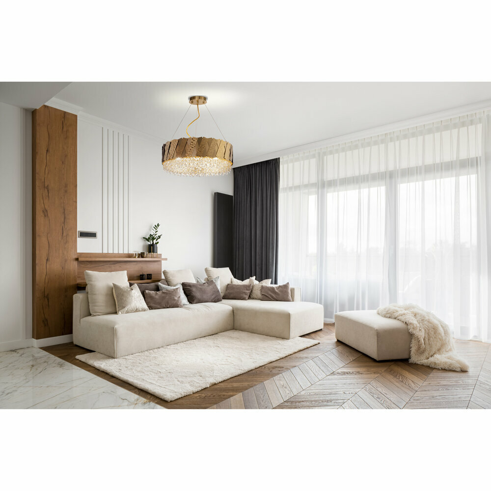 | Дополнительные характеристики | декоративные стеклянные подвески на люстрах и светильниках, гладкое расплавленное золото сковано в пластинах, создающих четкий геометричный рисунок, задающий ритм окружающему пространству |