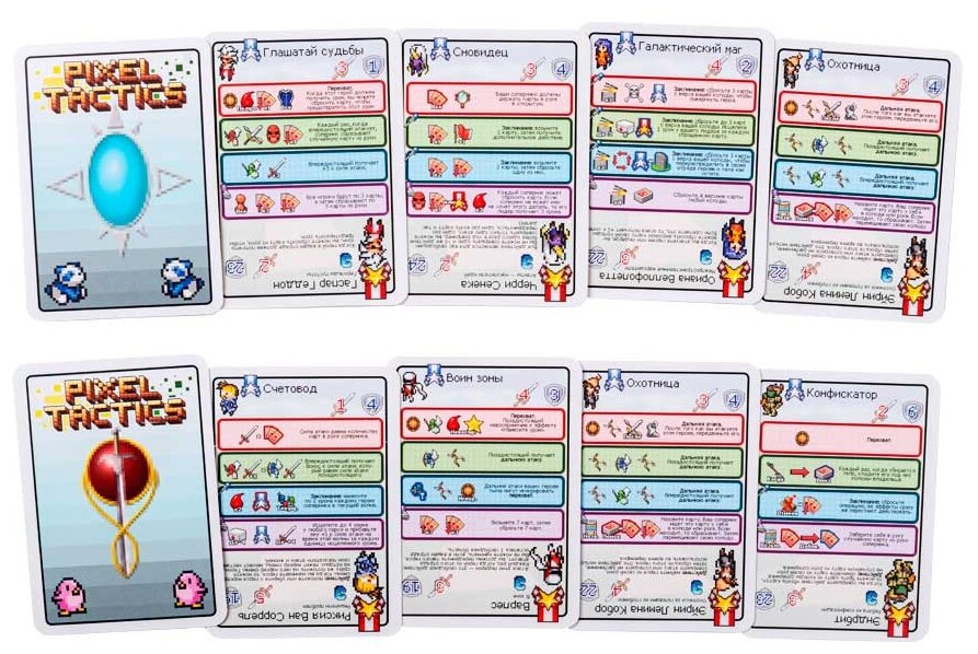 Это продолжение настольной игры Пиксель Тактикс. В неё можно играть отдельно, а можно объединить с предыдущими колодами — такой получится замес! Берите друга-гика, который так же, как вы, фанатеет по восьмибитным ретро-играм, и начинайте бой. Кроме боя, тут ничего другого делать и не надо.