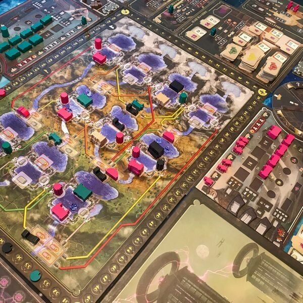 У вашей компании и вашей роли управляющего есть уникальные способности, которые стоит учитывать в своей стратегии. Также у вас общее игровое поле на всех — местность в Альпах, вы стремитесь её застроить. Одна из особенностей механики — колесо строительства, куда вы отправляете свою технику и получаете назад только после полного оборота колеса. То есть, планировать свою стратегию придётся на несколько ходов вперёд. У игры множество наград, это ценный подарок для любителей евростратегий и долгих вдумчивых партий.