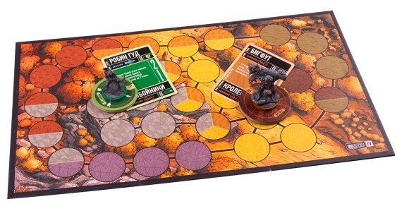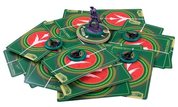 Я не сдамся без бояНа двухстороннем поле изображены несколько десятков ячеек, по которым могут перемещаться герои и их помощники (да, тут есть и такое - впрочем, у некоторых бойцов поддержки может и не быть).Соседние ячейки считаются смежными - это очень важно для определения цели атаки и эффектов карт. Каждый ход вы должны сделать два действия - одинаковых или разных, но обязательно два. Это может быть маневр, прием и атака. Нужно стереть противников в порошок быстрее, чем они это сделают с вами! У каждого героя свой показатель уровня здоровья, и если он падает до нуля - герой трагически кончается.