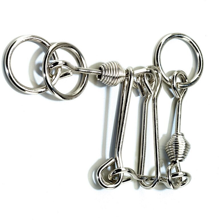 Коллекция Racing Wire Puzzles от Eureka в основном объединяет мини-головоломки, но эта модель крупнее собратьев. Нетипичный для серии объём потребовался разработчикам, чтобы создать интересный лабиринт. Съёмное кольцо нужно провести через всю конструкцию по настоящей полосе препятствий. А затем постараться водворить обратно, применив логику и пространственное воображение.