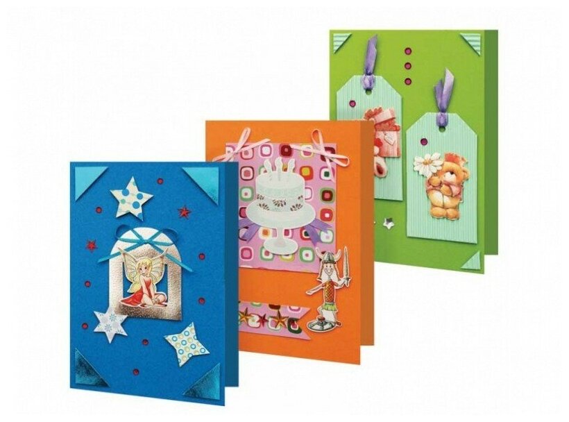 | Состав набора | 3 заготовок для открыток, 3 конвертов, бумага для скрапбукинга, клеевые подушечки, декоративные элементы |