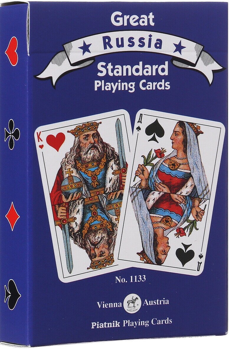 Колода «Русский стандарт», знакомая многим из нас еще с детства, подойдет для обычных игр, будь то «Дурак» или «Переводной», для карточных фокусов или любительских гаданий. Универсальная во всех отношениях колода принесет вам не один час удовольствия от увлекательной игры с друзьями, осталось только ее перетасовать и раздать для нужной партии.