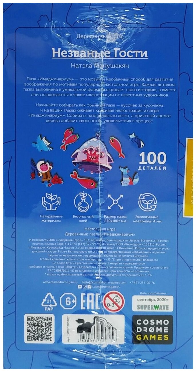 Красота в глазах смотрящегоКаждая деталь пазла - уникальный элемент в форме дерева, человека или животного. Вам не придется соединять в единое целое классические фигурки, каждый отдельный кусочек, эта целая история. Все вместе они сложатся в чарующий мир, нарисованный художниками известной настольной игры "Имаджинариум". Весь пазл сделан из древесины высокого качества. Отличный подарок как для тех, кто любит смотреть, так и для тех, кто предпочитает касаться.