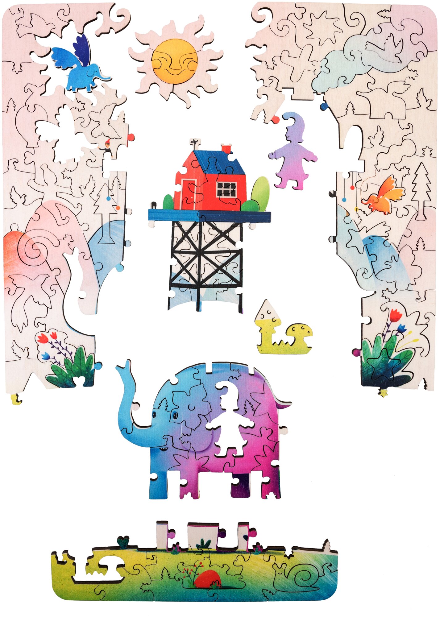 Красота в глазах смотрящегоКаждая деталь пазла - уникальный элемент в форме дерева, человека или животного. Вам не придется соединять в единое целое классические фигурки, каждый отдельный кусочек, эта целая история. Все вместе они сложатся в чарующий мир, нарисованный художниками известной настольной игры "Имаджинариум". Весь пазл сделан из древесины высокого качества. Отличный подарок как для тех, кто любит смотреть, так и для тех, кто предпочитает касаться.