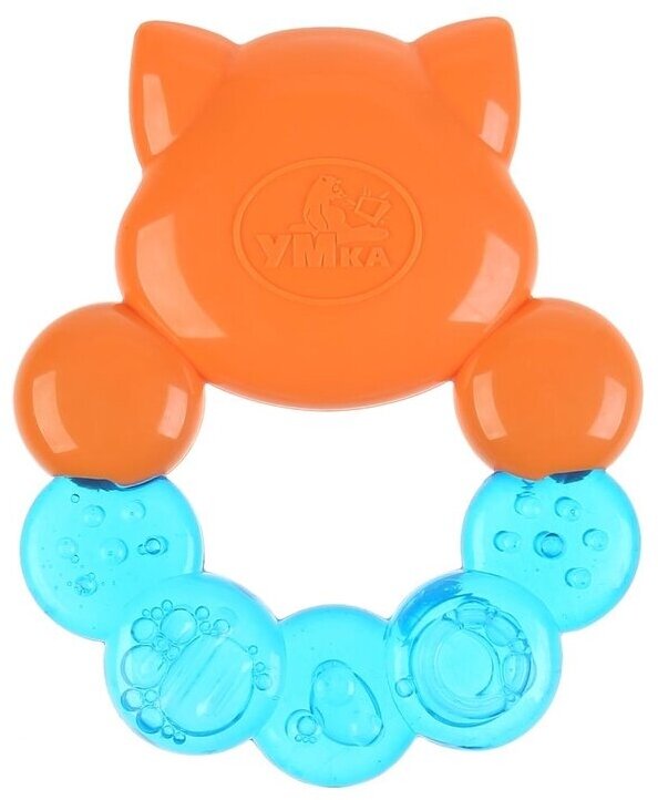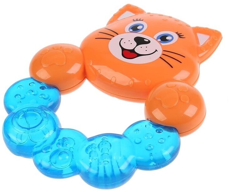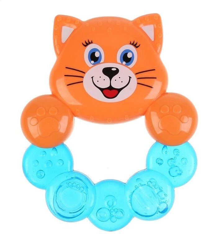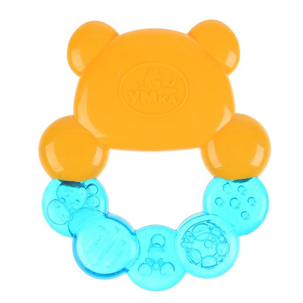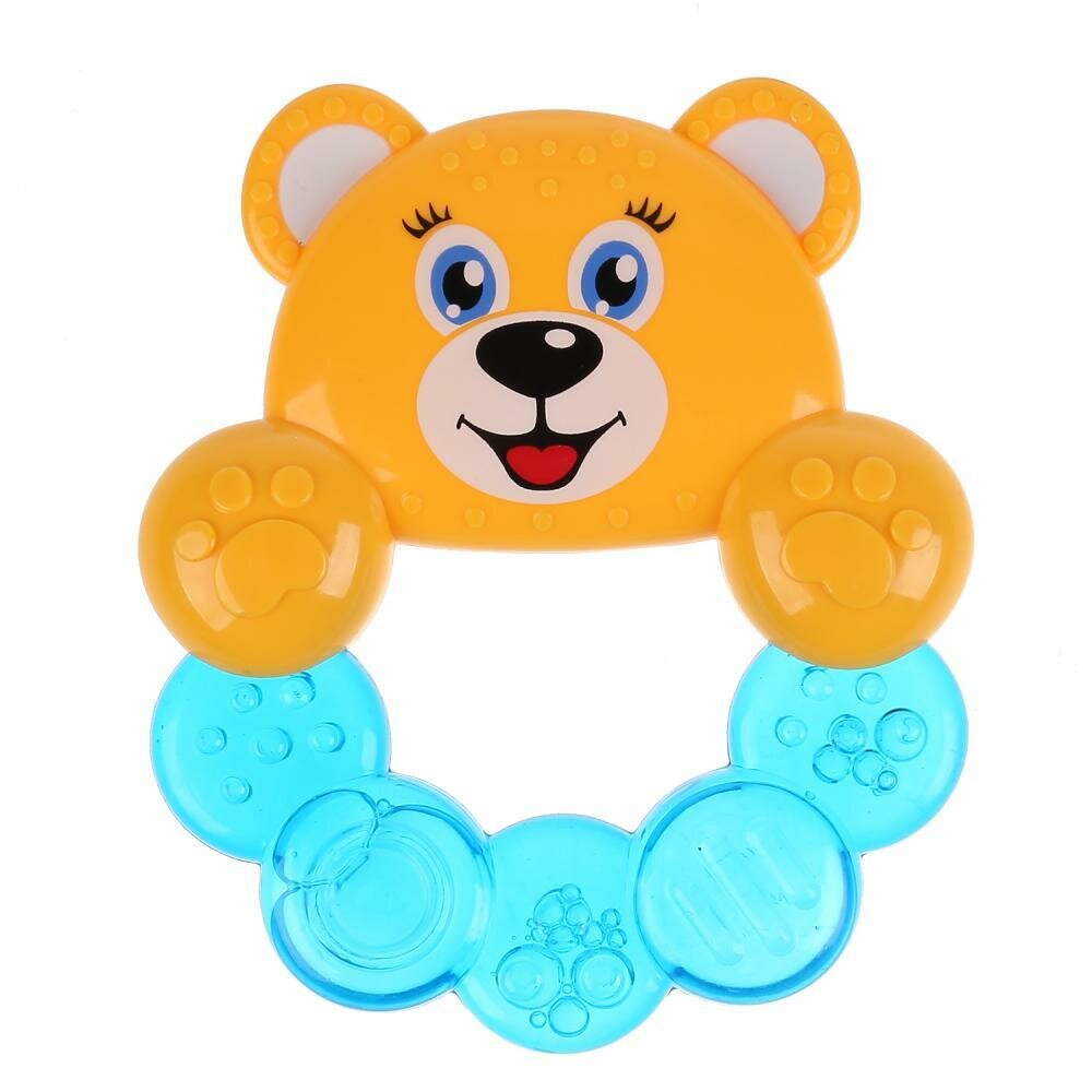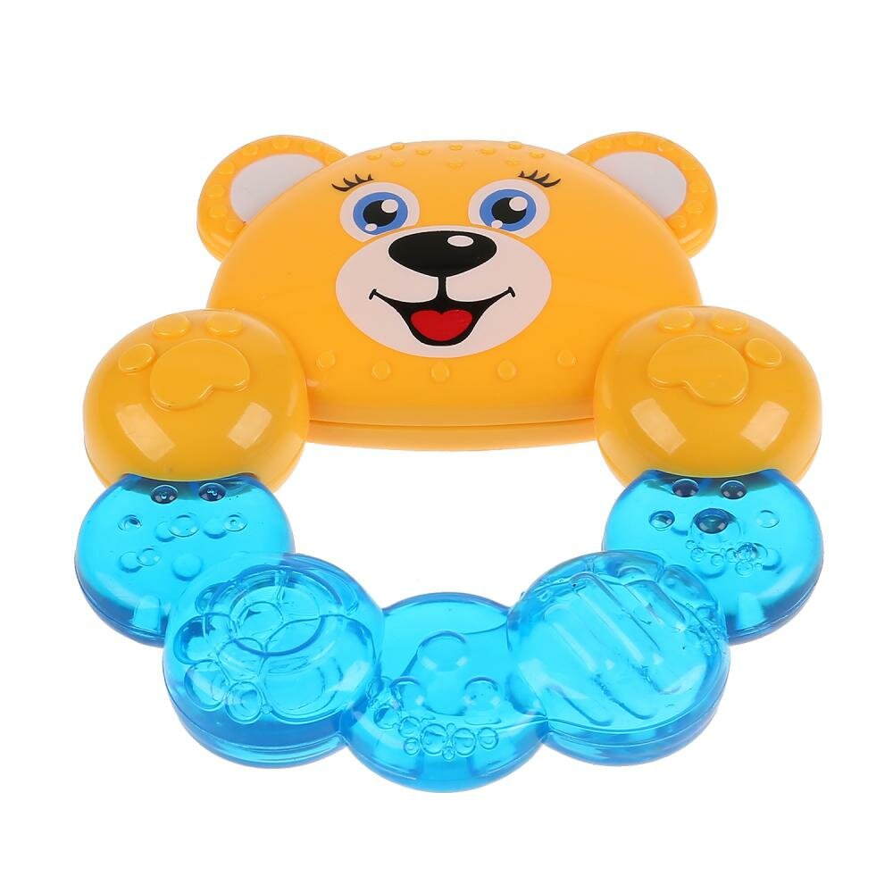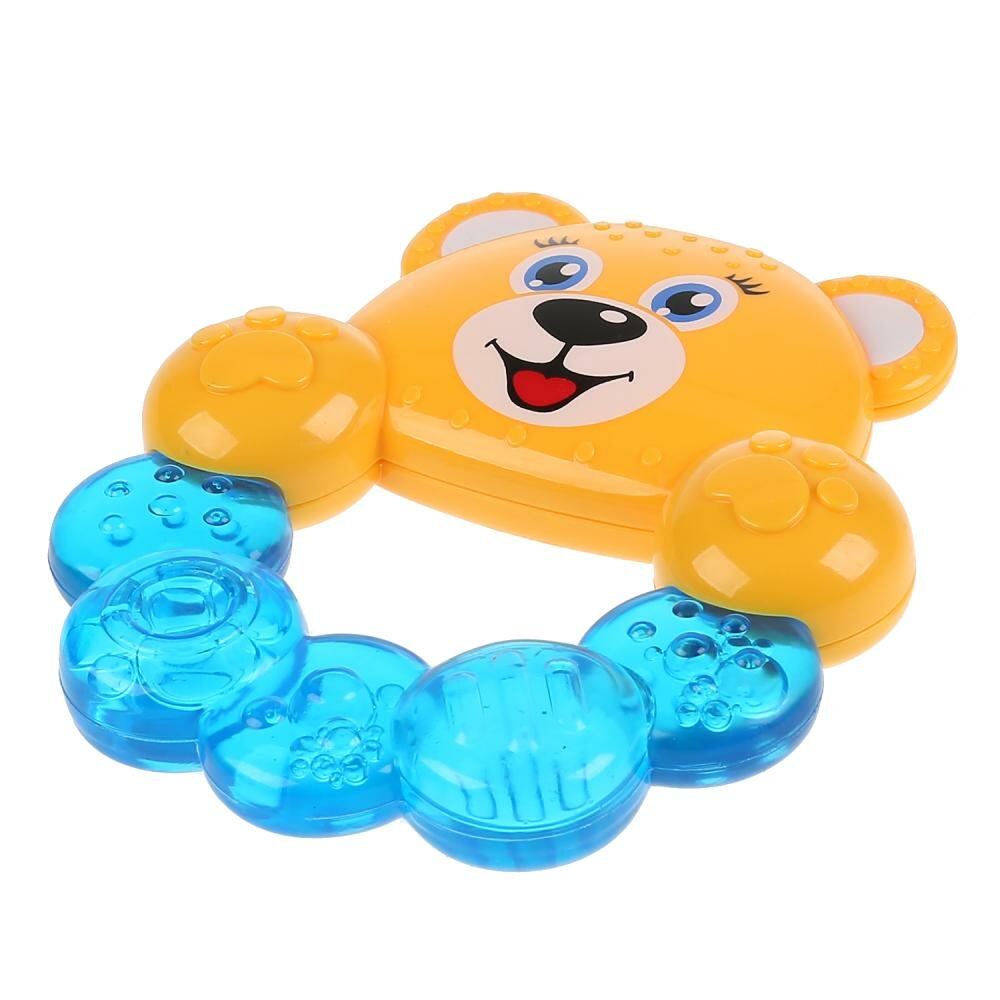 Верхняя часть игрушки выполнена из пластика в форме медведя, а нижняя представляет собой силиконовый прорезыватель с водой внутри. Игрушку можно грызть и кусать, поэтому она очень выручит, когда у малыша будут появляться первые зубки и чесаться дёсны.