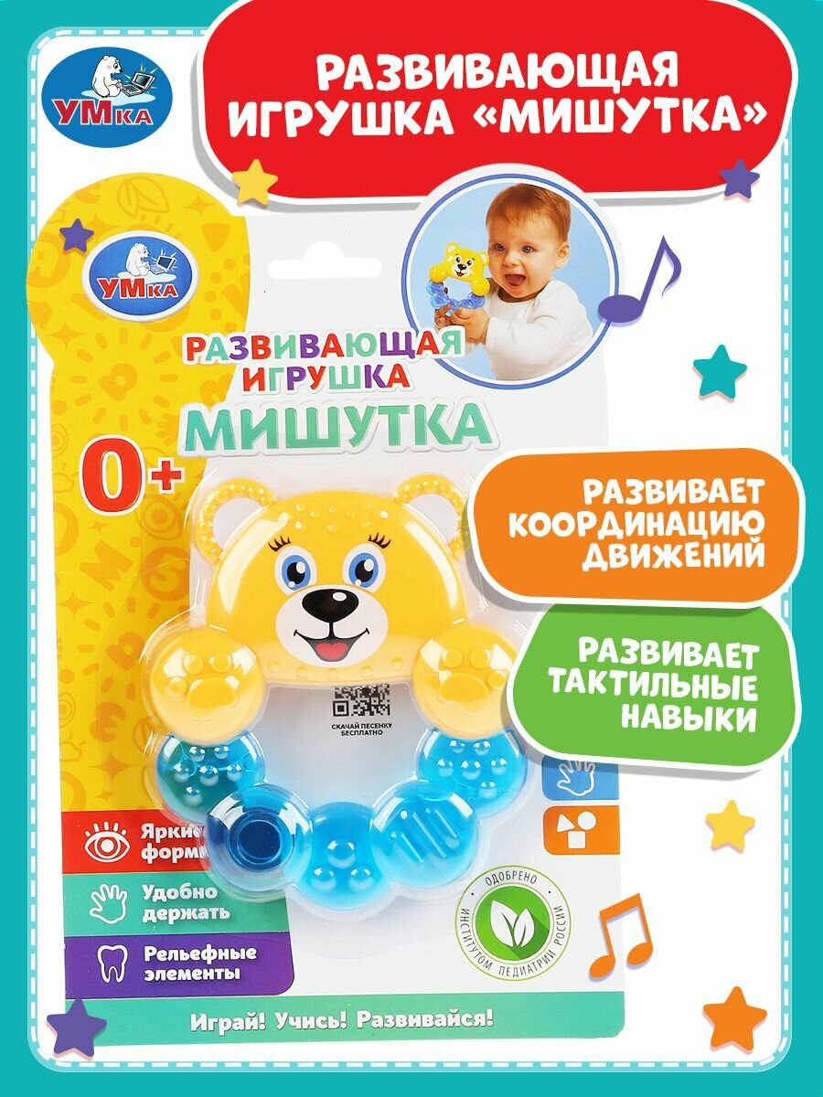 Погремушка Умка развивающая с прорезывателем Мишутка